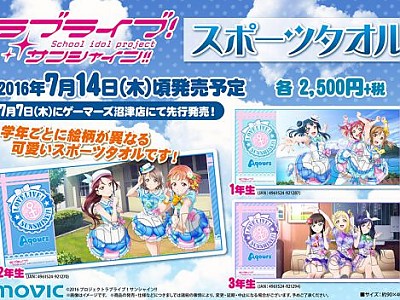 무빅으로부터 "러브 라이브! 선샤인!! "신상품이 등장하였다.<1> 스포츠 타올 (총 3 종)학년마다 일러스트가 다…
